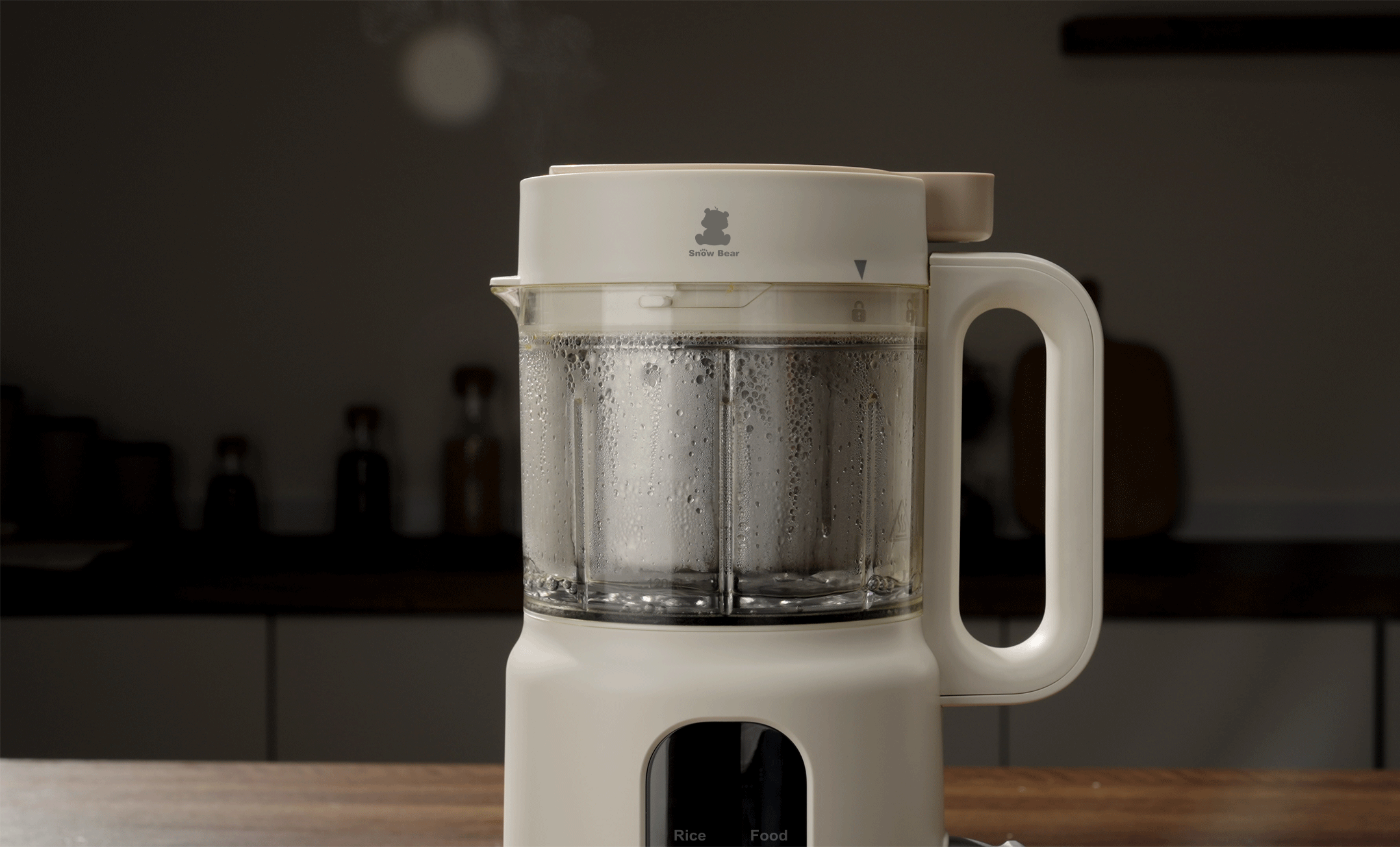 - Add 120ml of water into heating cup, place the food bowl and blade inside, add appropriate amount of ingredients, then add 30ml of water