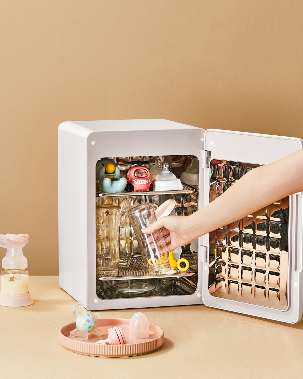 - 2個靈活隔間,適合不同尺寸的嬰兒用品